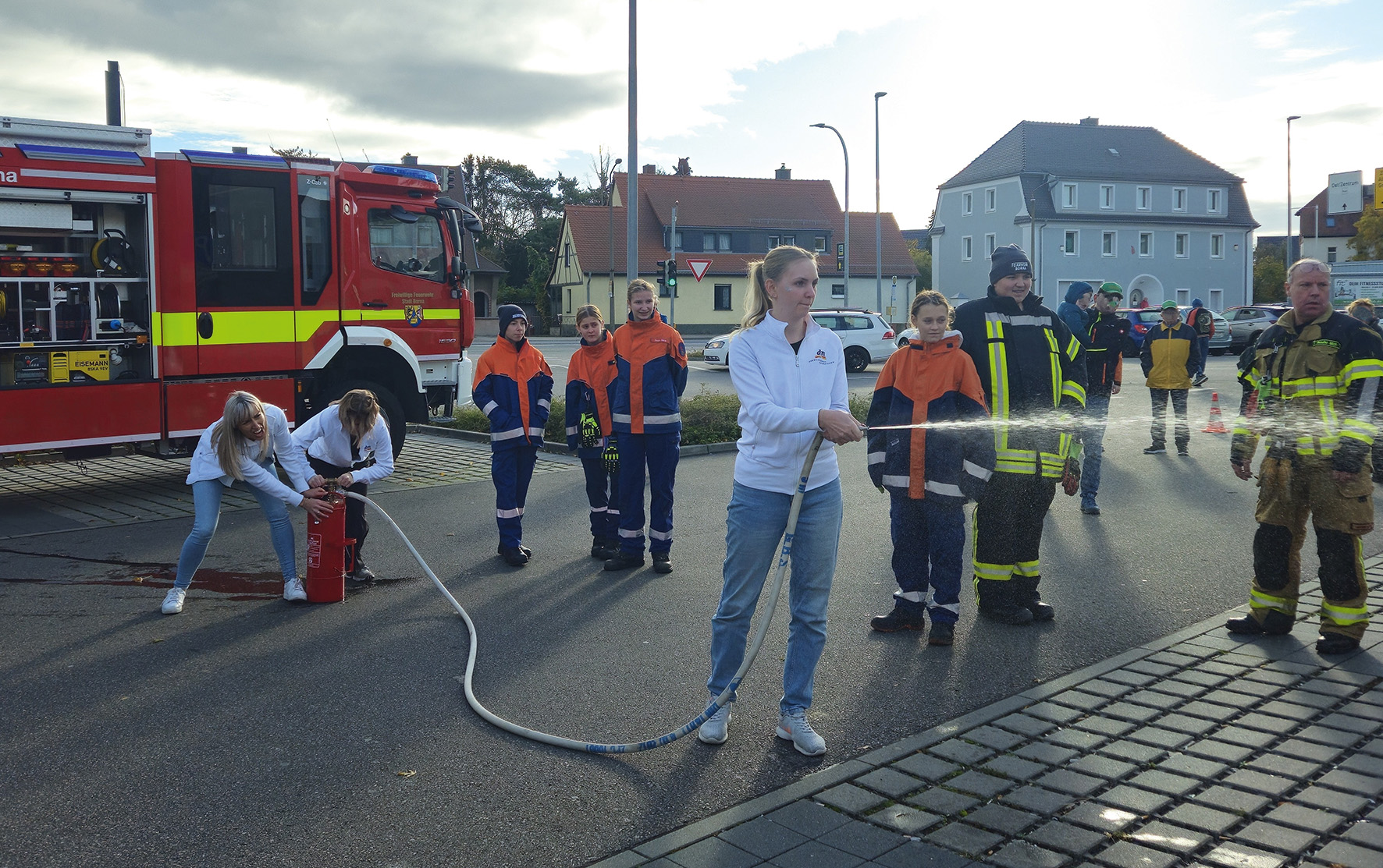 Auch die Mitarbeiterinnen vom Drogeriemarkt durften sich beweisen. Ihre Aufgaben waren nicht einfacher. Schlauchkegeln, Saugschlauch kuppeln und Flammen mit der Kübelspritze bekämpfen. Auch hier gab es jeweils eine Zeitvorgabe von drei Minuten. Nach allen sechs Spielen stand der Gewinner fest.