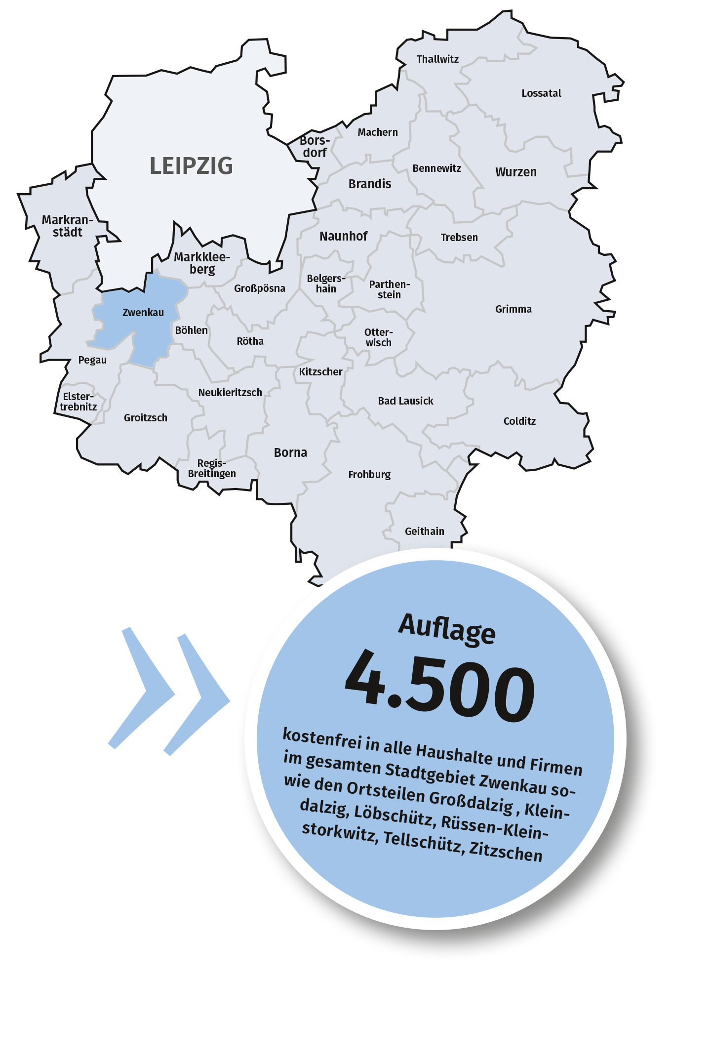 Mit einer Gesamtauflage von 100.000 Exemplaren im Monat erreichen wir mit unseren Stadtjournalen über 150.000 Einwohner und Gäste im gesamten Landkreis Leipzig.