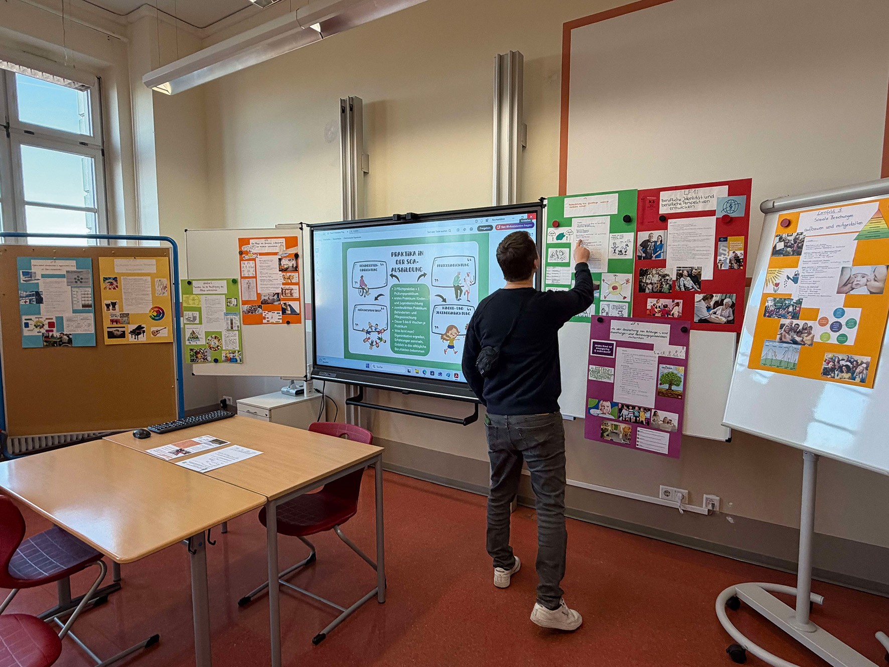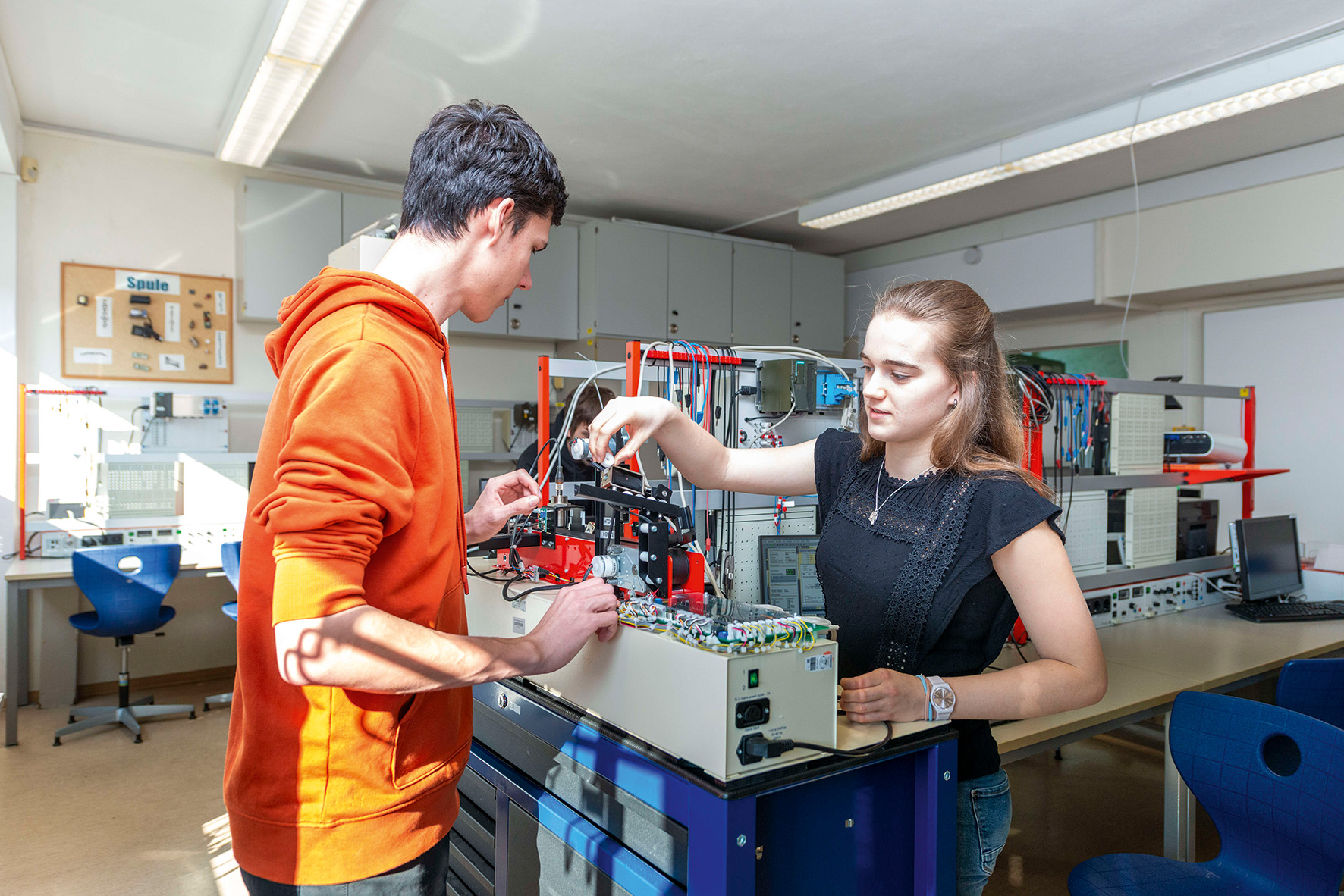 Parallel dazu bot die „Rote Schule“ in der Straße des Friedens Einblicke in soziale, hauswirtschaftliche und kaufmännische Bildungsgänge – von der Ausbildung zum Sozialassistenten bis zum Erzieher. Praktisch mit Versuchsreihen, die zu testen waren und moderner Technik, insbesondere im Bereich Metalltechnik, überzeugte das Labor- und Werkstattgebäude.