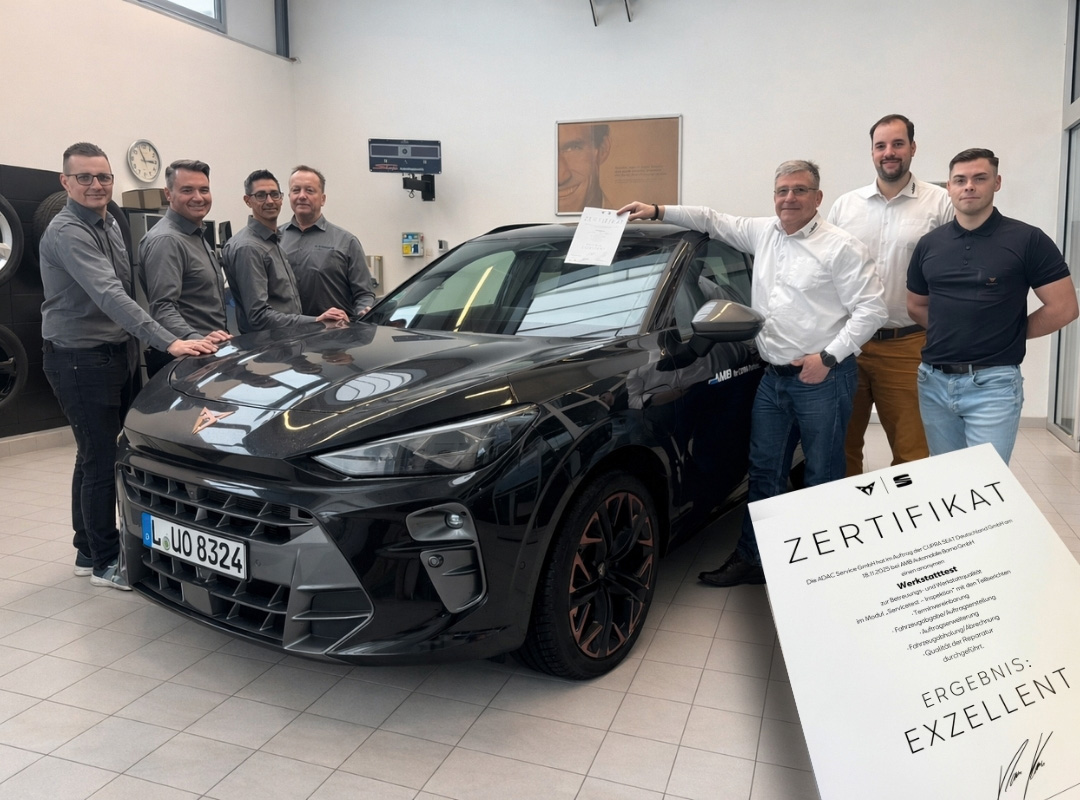 Im Rahmen eines Werkstatttests der ADAC Service GmbH, durchgeführt im Auftrag von CUPRA, wurde die Werkstatt mit einem exzellenten Ergebnis bewertet. Geprüft wurden unter anderem die technischen Abläufe, die Servicequalität, die Transparenz gegenüber Kundinnen und Kunden sowie die konsequente Einhaltung der hohen CUPRA & SEAT-Standards. Das hervorragende Abschneiden bestätigt den hohen Qualitätsanspruch und das tägliche Engagement des gesamten Werkstatt-Teams.