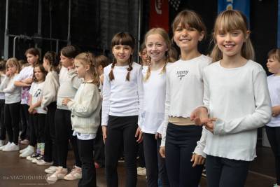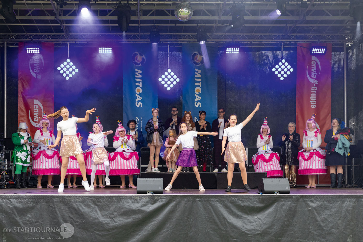 - Rathausplatzbühne mit der Tanzeria, Rathauscombo und den Fechtern des TV Markkleeberg