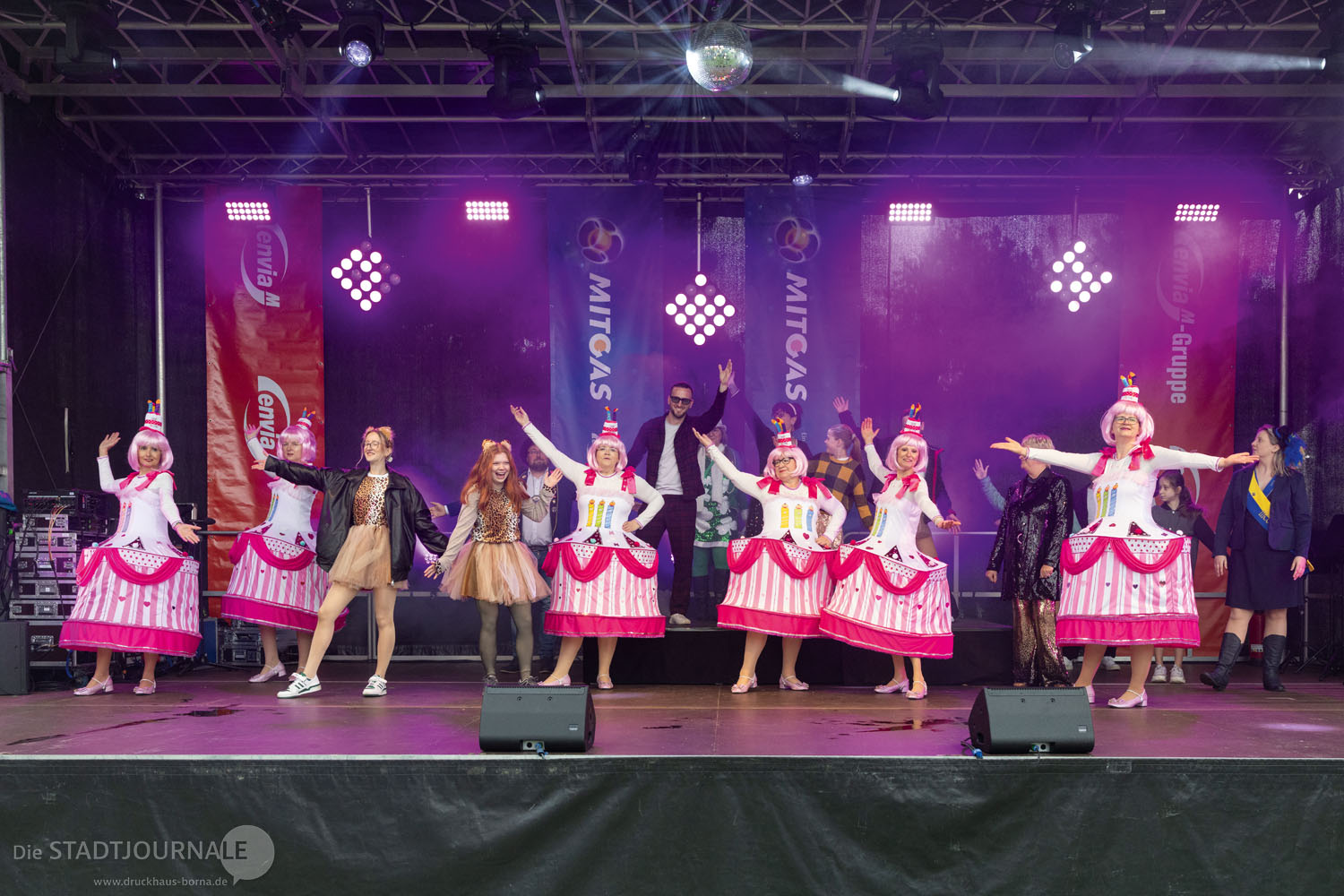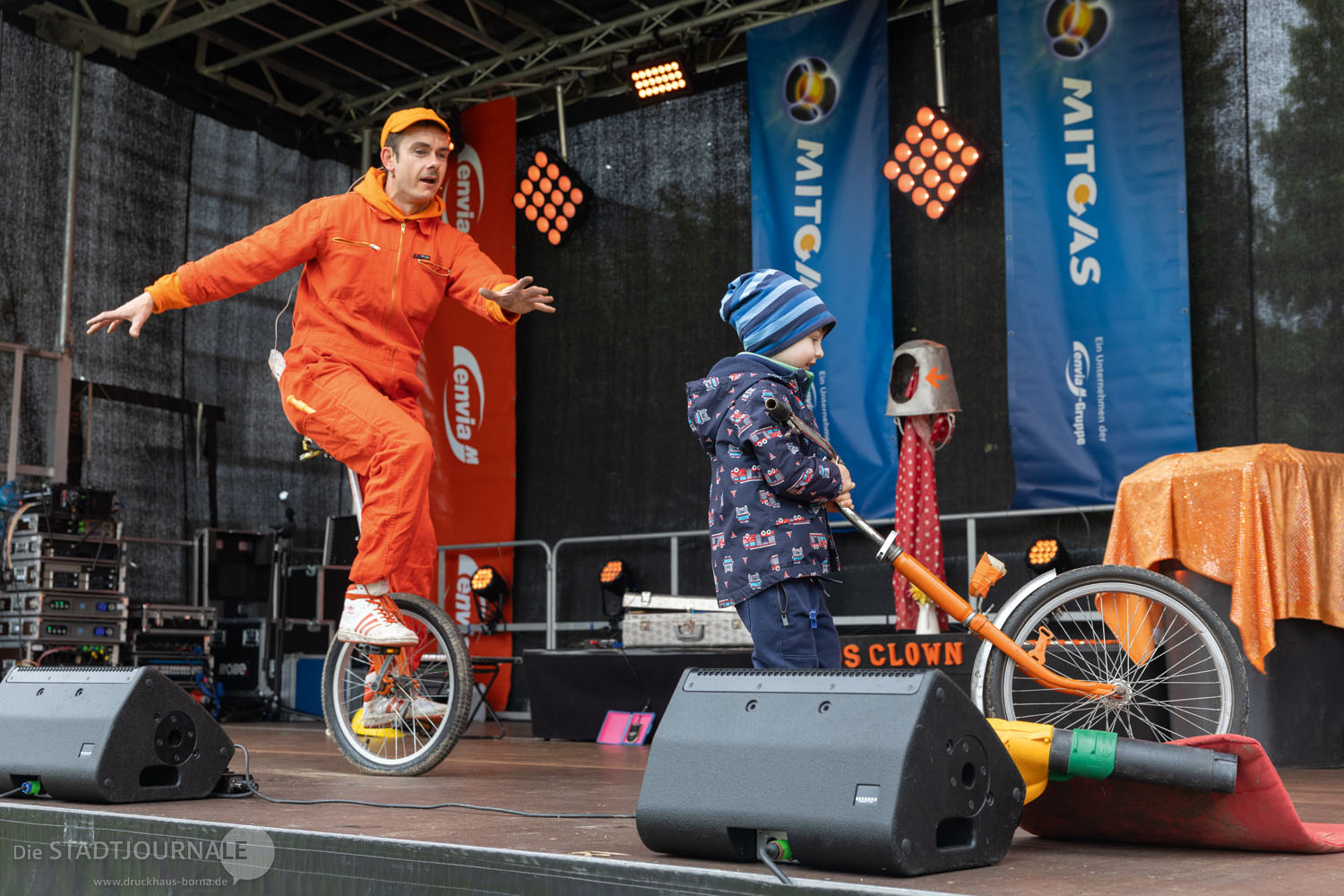 - Bühnenprogramm mit dem mcc, dem Kaosclown, den Neuseenland-Volleys, dem Stadtfanfarenzug und der Tanzschule Oliver & Tina