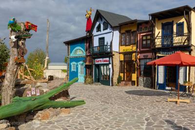 Auf rund drei Hektar warten mehr als zwanzig Miniwelten, die vorwiegend aus Robinienholz sowie Natur- und Recyclingmaterialien gebaut sind. Besucher entdecken hier ein Bergwerk mit Riesenrutsche, verschlungene Pfade mit Seilbrücken, idyllische Gärten oder das Fischerdorf am Kranichteich. Jede Ecke des Parks ist mit handwerklichem Können und viel Liebe zum Detail gestaltet.