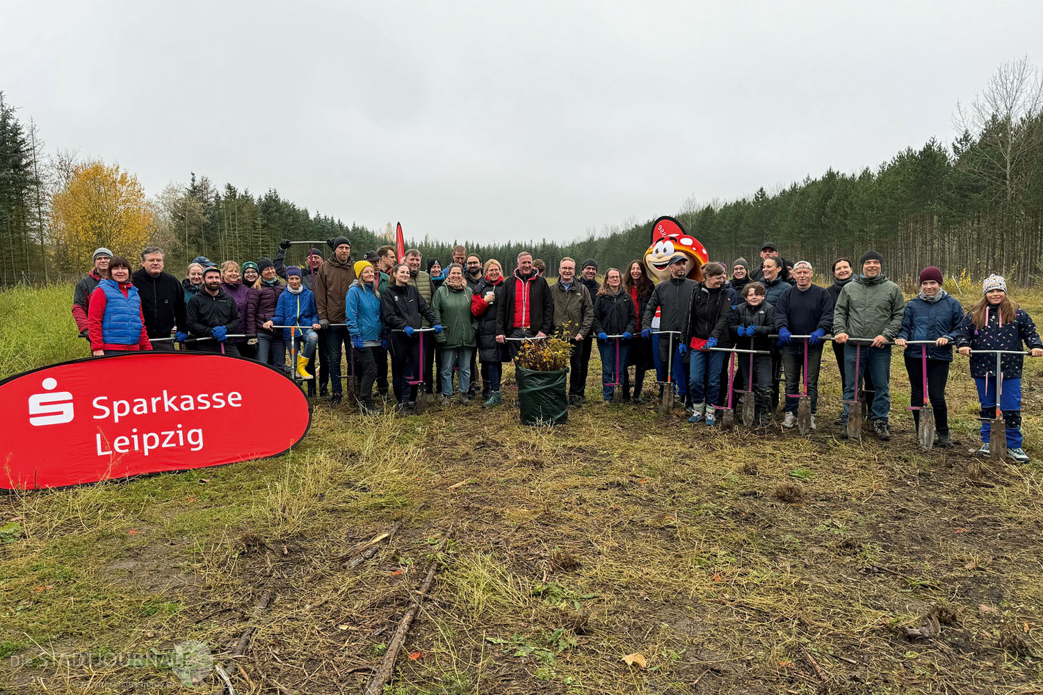Seit Herbst 2023 unterstützt die Sparkasse Leipzig gemeinsam mit der PS-Lotterie Wiederaufforstungsprojekte in ihrer Region. Dieses Engagement wird fortgeführt: Im Frühjahr 2026 wird die Sparkasse Leipzig den 20.000. Baum in ihrem Geschäftsgebiet pflanzen – ein besonderer Höhepunkt im 200. Jubiläumsjahr der Sparkasse.