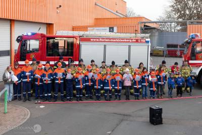 Als Dank für die stimmungsvolle Darbietung spendierten der Globus Baumarkt und der Nikolaus kleine Präsente, Glühwein und Bratwurst. Zudem durfte sich die Kinder- und Jugendfeuerwehr über den Wetteinsatz freuen: als Spende in Höhe von 350 Euro.