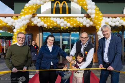 Der Bau des modernen Restaurants dauerte nur knapp drei Monate: Am 21. August diesen Jahres erfolgte der erste Spatenstich. Nachhaltigkeit wird hier großgeschrieben: So wurde auf dem Dach eine Solaranlage installiert, der Kinderspielplatz besteht aus Recyclingmaterial und an speziellen Recyclingstationen wird der Müll getrennt. Im Innenbereich finden 108 Gäste Platz, auf der Außenterrasse weitere 64. Ein zweispuriger McDrive, Pick-up-Parkplätze und zwei Schnellladesäulen für Elektroautos ergänzen das Angebot.