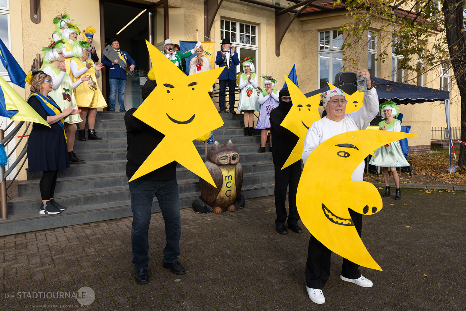 Wie der Titel schon sagt, wollen wir mit unseren Freunden in ferne Welten reisen und Gäste aus den Weiten des Weltalls bei uns begrüßen. Unsere Närrinnen und Narren haben keine Kosten und Mühen gescheut, um den Großen Lindensaal galaktisch zu schmücken und eine Landebahn für Raumschiffe zu bauen. Unser „Gastspiel“ in der Rudolf-Hildebrand-Schule war die Rettung für uns in der vergangenen Saison. Wir möchten noch einmal allen danken, die uns diese Alternative ermöglichten. Doch nun blicken wir voraus. Wir laden Sie ganz herzlich zu unserem neuen Programm in Großen Lindensaal im Rathaus Markkleeberg ein.