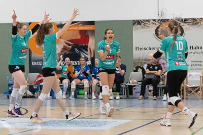 Und die Gäste hielten, was der Trainer sich von ihnen versprach, so dass die wieder mehr als 200 Fans in der Halle insgesamt das erwartete Spiel auf Augenhöhe von Tabellennachbarn zu sehen bekamen, das phasenweise für unsere Mädels auf der Kippe stand. Doch die Fans wollten natürlich mit dem Team drei Punkte feiern und machten generell, aber in den für uns kritischen Phasen des Spiels umso mehr, Stimmung in der Halle. Aber der Reihe nach: