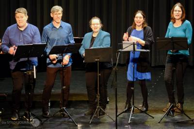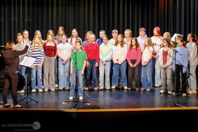 Nachdem das Blockflötenensemble einige Melodien aus Bizets Oper „Carmen“ zu Gehör gebracht hatte, gestalteten die Gruppe „Lovely Voice“ und der JugendPOPchor zunächst einzeln und später gemeinsam einen furiosen Abschluss dieses abwechslungsreichen und kurzweiligen Abends.