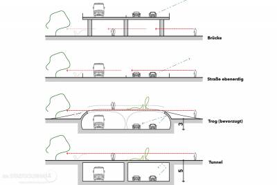 Dass es konkrete und anschauliche Alternativen zum Brückenneubau gibt, zeigen bereits vorliegende Entwürfe und Visualisierungen des Leipziger Architekten Gunnar Volkmann vom Büro W&V Architekten. Sie veranschaulichen eine abgesenkte Straßenführung im Bereich des agra-Parks und machen deutlich: Die Tieferlegung ist keine abstrakte Idee, sondern eine planerisch vorstellbare und gestalterisch überzeugende Alternative, die jetzt ernsthaft geprüft werden muss. Weitere Informationen finden Sie auf www.proagrapark.de.