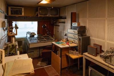 Bei einem geführten Rundgang konnte auch der ehemalige „agra-Club“ besichtigt werden. Rot getünchte Wände, schwarze Ledersitzgruppen und stellenweise bröselnder Putz – ein Charme längst vergangener Tage. Der Höhepunkt und zugleich Abschluss des Rundgangs fand sich wieder in Halle 4 im Obergeschoss: der Vorführraum. Wie in einer Zeitkapsel waren hier Kinoprojektoren, Mischpulte und Filmrollen zu entdecken.