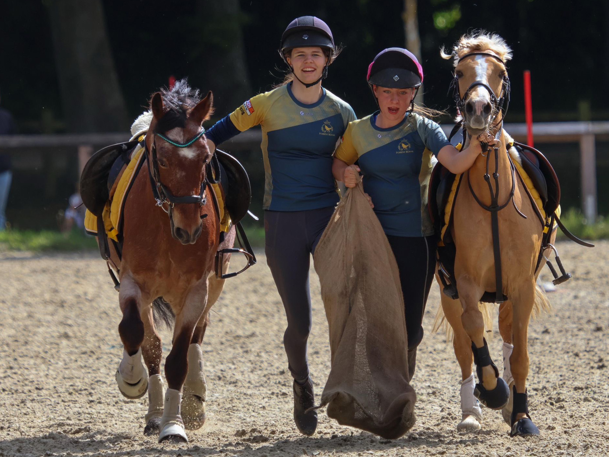 Die U17-Mädels des MG Reitsport Waldsteinberg mit Emma, Nela, Finja, Lilou, Rosalie und Maya begeistern im Mounted Games als starkes Team. Sie holten Bronze bei der Deutschen Meisterschaft und den Landesmeistertitel in Sachsen. Sie werden dreimal wöchentlich in Athletik, Dressur und Mounted Games von Gina George trainiert.