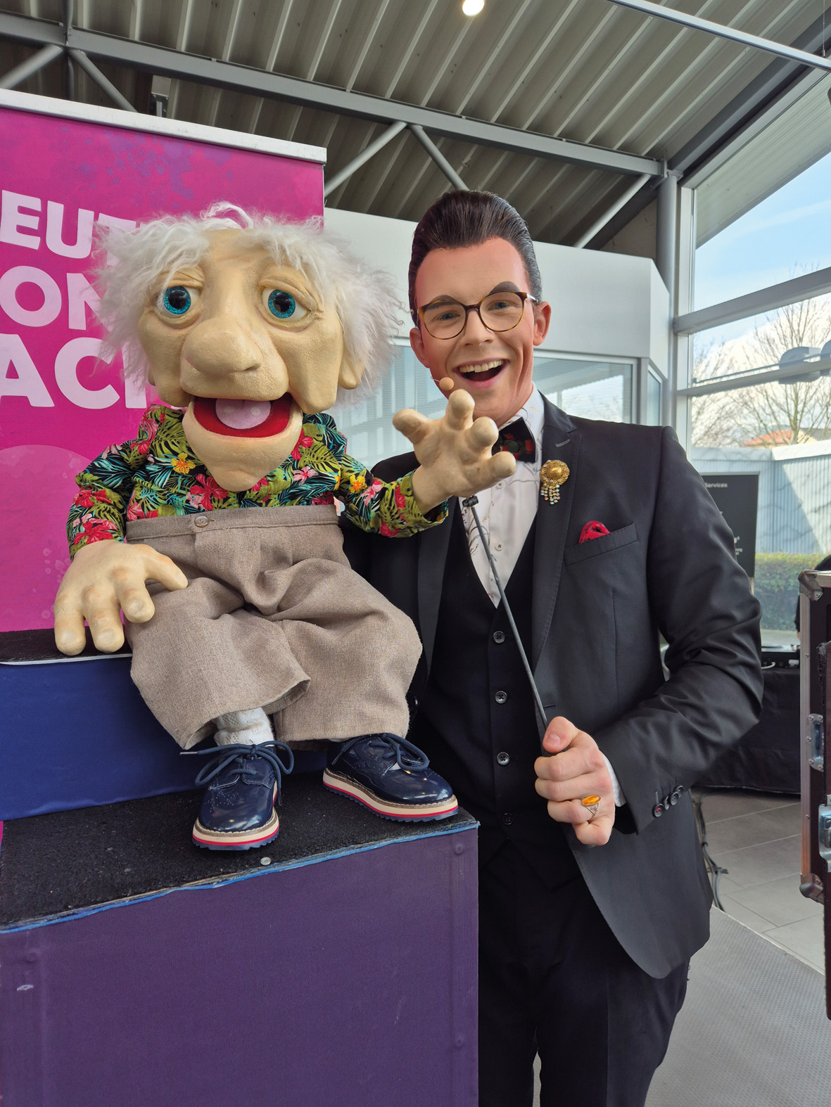 bzw. die des Bauchredners zog auch viele Besucher des AMB-Frühlingsfestes am 22. März in ihren Bann. Besonders, wenn der Bauchredner Roy Reinker ist. Schließlich beherrscht er nicht nur die Kunst, seine Lippen kaum zu bewegen und den Puppen auf seiner Hand Leben einzuhauchen, sondern besitzt noch ein enorm komisches Talent, welches er auch noch mit Moderationen verbindet. Obwohl der junge Mann erst 27 Lenze zählt, ist sein alter Puppenego Opa Siegfried. Dass der liebenswerte Rentner mit seinen Alltags- und Eheproblemen so lebensnah rüberkommt, liegt auch daran, dass der Künstler seine Umwelt gut studiert und diese parodistisch verarbeitet. Das Publikum stellt sich voll auf den Opa ein und schüttet sich vor Lachen aus. Die Stimme des daran befindlichen Künstlers wird so perfekt manipuliert, dass sie aus einer anderen Richtung zu kommen scheint, also aus der Puppe. Das Ensemble von Reinker besteht noch aus dem Drachen Melvin, der, ähnlich wie der kleine Zeichentrickdrache Grisu, das Publikum entbrennen lässt, dem Zahnspange tragenden und verpeilten Norbert, den Kuscheltraumpaar mit erotischem Touch Rosi und Herr Knitter sowie dem frechen Baby. Ergänzt wird die schrille Bande von Irionimus, der den frischen Wahnsinn des Weltgeschehens mit geballtem Wissen zu Ironie verarbeitet. Der Stubentiger Muschi und der Zitronenfalter Holger geben ebenfalls ihre Meinungen in Form ihres Wesens Preis und die ältere Lady Marcella rundet mit Flirtkursen das Ensemble des Bauchredners ab. Das Besondere der Roy Reinker Show ist, dass der Künstler gleich zwei bis drei seiner Charaktere Leben einhaucht und sie natürlich mit unterschiedlichen Stimmen spricht. In jedem Fall garantiert der begnadete Künstler grandiose Lachsalven und die feuchten Augen der Freude.