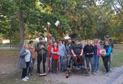 Das erste Laub durfte nicht liegen bleiben. Gemeinsam wurde geharkt, gesammelt und beiseite geschafft. Schon Tage zuvor sammelten alle Kindergartenkinder fleißig Kastanien ein, damit die Waldbewohner aus dem Wildgehege Dittmannsdorf Futter für den Winter haben.