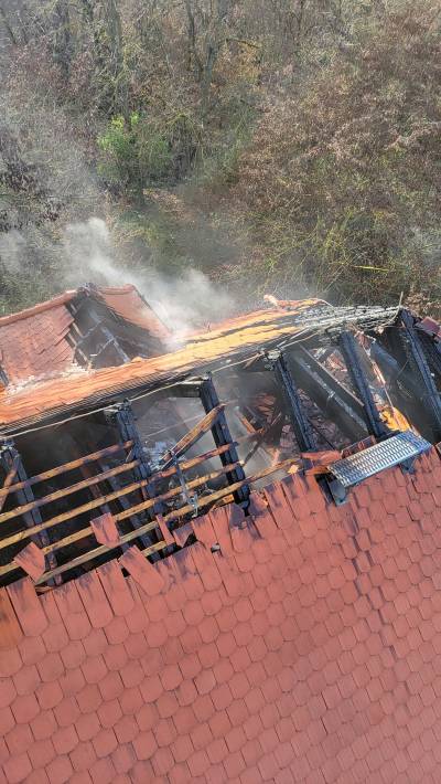 Gemeinsam mit den Feuerwehren Thräna und Lobstädt wurden die Bornaer Kameraden am 25.11.2026 um 10:24 Uhr zu einem Gebäudebrand in einem leer stehenden Objekt in der Fabrikstraße alarmiert. Da die Einsatzstelle den Brandschützern bereits von mehreren Einsätzen gut bekannt ist, konnte man erahnen, was auf die Einsatzkräfte zukommt. Als wir vor Ort ankamen, stand ein Raum im Obergeschoss in Brand. Das Feuer hatte sich aber auch bereits in das Dachgeschoss ausgebreitet. Schnell rüsteten sich mehrere Trupps mit schwerem Atemschutz aus und begannen die Brandbekämpfung im Innenbereich sowie auch von außen. Aufgrund der baulichen Situation im Dachgeschoss und dem Durchbrennen eines Zwischenbodens konnte eine vollständige Brandbekämpfung durch einen Innenangriff nicht durchgeführt werden. Die Drehleiter wurde aus diesem Grund zum Öffnen der Dachhaut und zur Brandbekämpfung von oben in Stellung gebracht. Zur Unterstützung der Löschmaßnahmen wurde die Feuerwehr Zedtlitz ebenfalls an die Einsatzstelle gerufen. Um ausreichend Atemschutztechnik vor Ort zu haben, wurde der Gerätewagen Atemschutz des Feuerwehrtechnischen Zentrums angefordert. Die massiven Löschmaßnahmen mit mehreren Rohren und dem Werfer der Drehleiter zeigten schnell einen Erfolg. Nachdem die sichtbaren Flammen bekämpft wurden, mussten unzählige Zwischenwände und Böden geöffnet werden. Nur dadurch konnten alle Glutnester aufgespürt und gezielt abgelöscht werden. Diese kräftezehrende und mühevolle Aufgabe zog sich über mehrere Stunden. Mit den Nachlöscharbeiten und der Wiederherstellung der Einsatzbereitschaft waren die rund 25 Kameraden der Feuerwehren Borna, Zedtlitz, Thräna und Lobstädt über sechs Stunden im Einsatz. Am Einsatz beteiligt waren ebenfalls Kräfte des Rettungsdienstes, des Ordnungsamtes und der Polizei. Einsatzleiter Kai Noeske zeigte sich mit der routinierten und schnellen Handlungsweise sowie der sehr guten Zusammenarbeit aller Kameraden der einzelnen Wehren und der weiteren Einsatzkräften sehr zufrieden. Nur durch dieses Engagement können solche Einsätze ordentlich abgearbeitet werden.