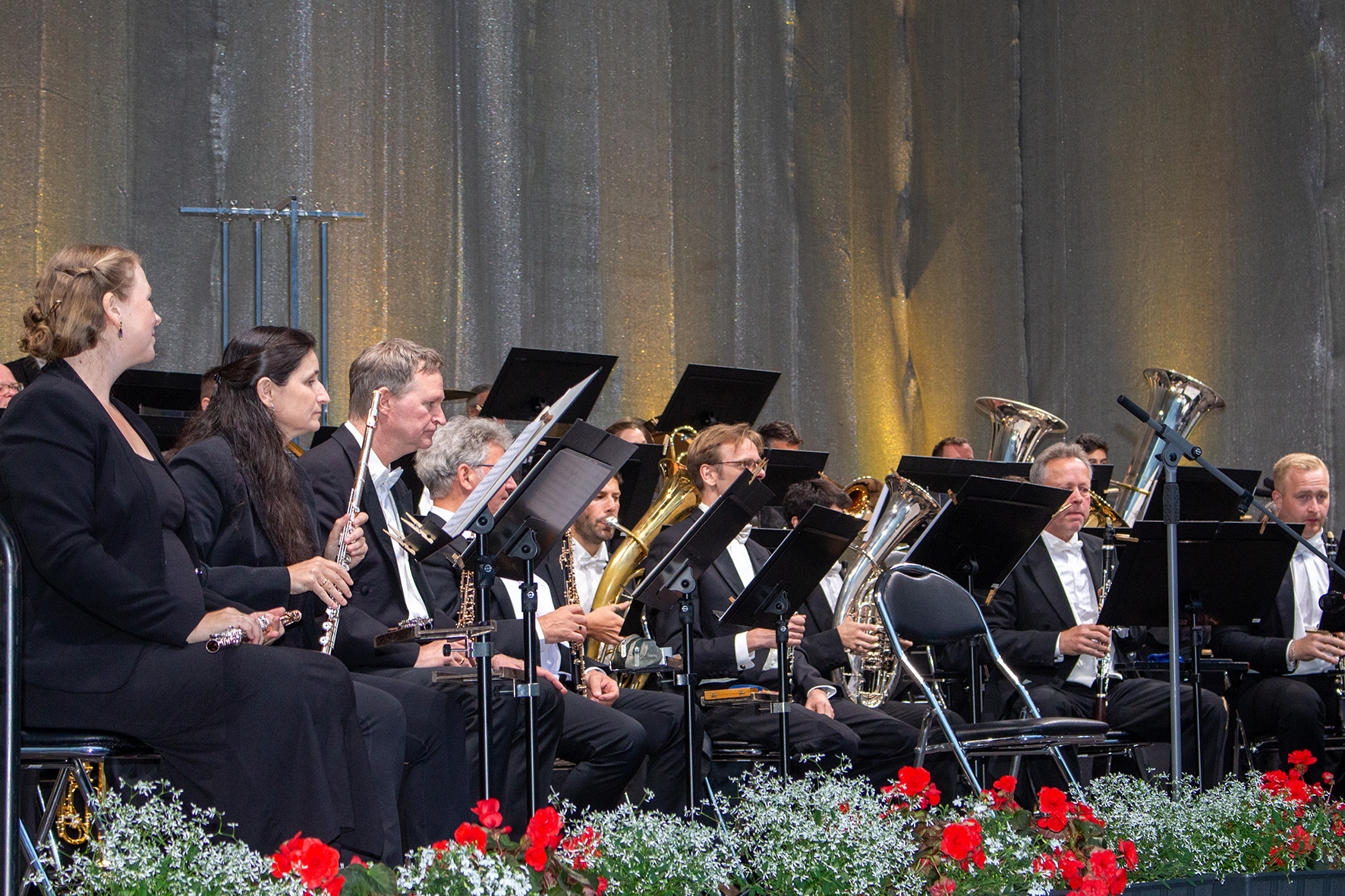 Die Sächsische Bläserphilharmonie, ausgezeichnet mit dem „OPUS KLASSIK“ 2023, ist nicht nur ein kultureller Botschafter der Region Leipzig, sondern spielte auch eine zentrale Rolle bei dieser Delegationsreise. Am Abend des 7. Juli spielten die in Bad Lausick ansässigen Bläser ihr letztes Konzert der Spielzeit 23/24 und überraschten mit einem besonderen Highlight. Die Bläserphilharmonie zählt deutschlandweit zu den 129 Kulturorchestern und ist einzigartig, da sie ausschließlich in sinfonischer Bläserbesetzung auftritt. Ihr Auftritt bei den jährlich stattfindenden Innsbrucker Promenadenkonzerten, in der historischen Innsbrucker Hofburg, bot den perfekten Rahmen für ein erstes Zusammentreffen mit eingeladenen regionalen Wirtschaftsvertretern. Der Abend begann mit einem exklusiven Empfang im Kulturrestaurant „Das Brahms“, das Kunst und Wirtschaft auf besondere Weise vereint. Der Sektempfang bot die Möglichkeit, mit ortsansässigen Unternehmen und Tiroler Wirtschaftsvertretern in Kontakt zu treten. Gemeinsam konnten die Teilnehmer des Empfangs anschließend der Uraufführung des Werks „Alpenglühen“ von Hennig Wölk, zusammen mit Solocellist Jakob Spahn, Bayrische Staatsoper, beiwohnen.
