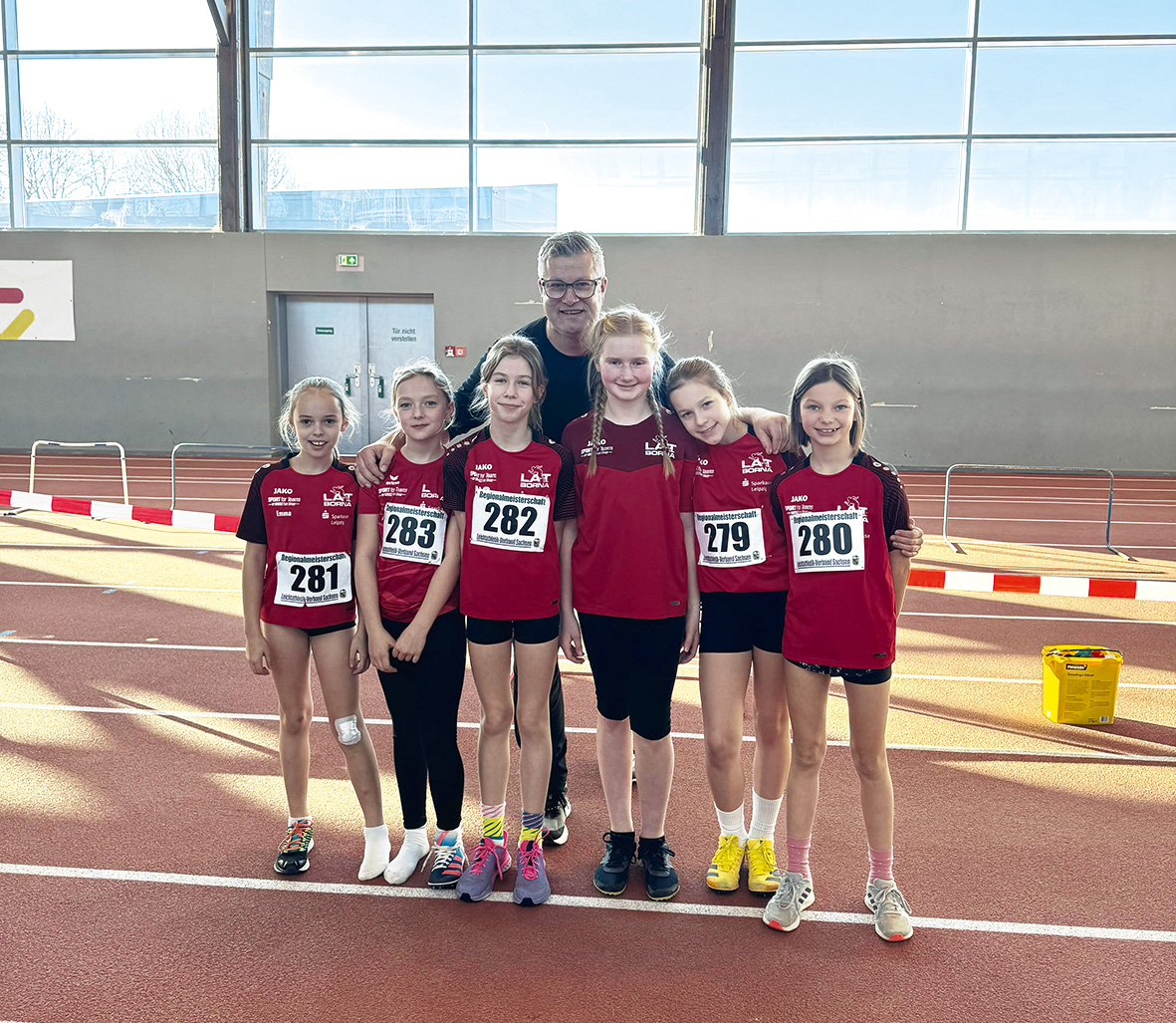 Der erste Wettkampf im neuen Jahr verlief gleich sehr erfolgreich für das Leichtathletik-Team Borna. Bei der Regionalmeisterschaft Leipzig am 11. Januar 2026 konnten die Jungs der U12 ihren Mannschaftstitel im Fünfkampf aus dem Vorjahr verteidigen. Ben und Tim Nöbel konnten in der Halle an der Leipziger Nordanlage gemeinsam mit Richard Neugebauer die erste Mannschaft des SC DHfK Leipzig um knappe 90 Punkte auf den Silber-Rang verweisen. Die gleichaltrigen LAT-Mädchen belegten den beachtlichen 12. Platz von 25 Teams. In der Einzelwertung schnappte sich Tim Nöbel besonders Dank 9,8 sec über 60 m Hürden und 7,3 sec im 50 m-Sprint den Regionalmeistertitel der M11. Sein Bruder Ben machte mit Silber den Bornaer Doppelsieg komplett. In der M10 verpasste Richard Neugebauer um gerade einmal 35 Punkte die Medaillenränge und wurde starker Vierter. Beste weibliche Starterin aus Borna war Leonie Suntrop in der W11. Von 48 Starterrinnen erkämpfte sie sich mit starken persönlichen Einzelleistungen den 12. Platz.