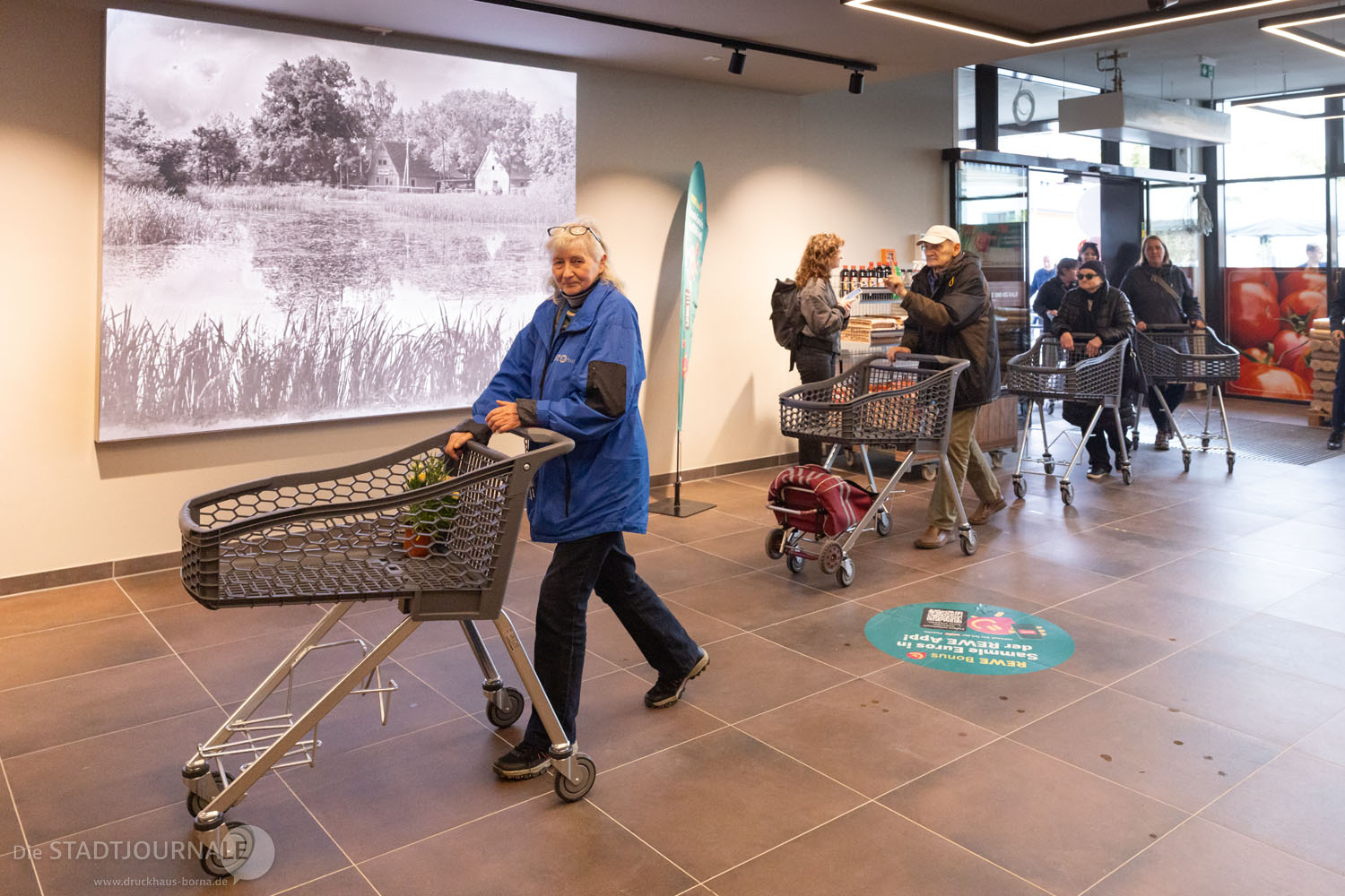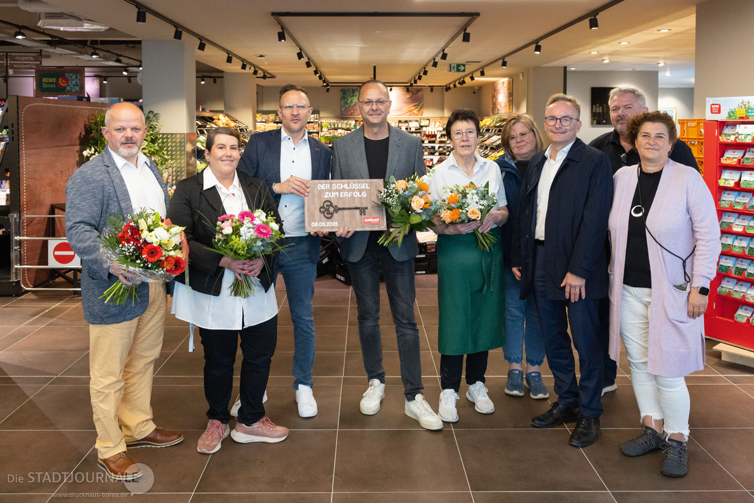 Seit Donnerstag, 8. Mai 2025, ist der Nahkauf-Markt in der Hauptstraße 229 / 231 wieder geöffnet. Inhaber Thomas Sachse und Filialleiterin Sandy Beckert freuten sich auf ihre Kunden, zahlreiche standen bereits vor dem offiziellen Startschuss um Punkt 10.00 Uhr Schlange, um ihre Einkäufe in den neuen Räumlichkeiten zu erledigen. Neben dem 920 Quadratmeter großen Supermarkt gibt es auch eine Bäckerei mit Café. Im Gebäude selbst wird noch gearbeitet: Der SB-Bereich der Sparkasse und ein Sanitätshaus werden bis zum Sommer eröffnet. Dann beginnt auch die Vermarktung der 16 Wohneinheiten; die ersten Mieter können im Spätsommer einziehen.