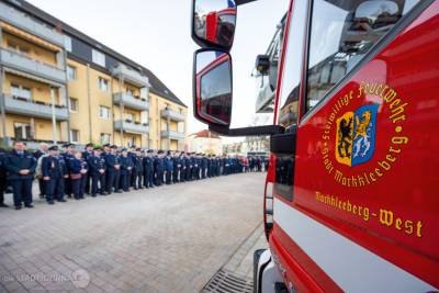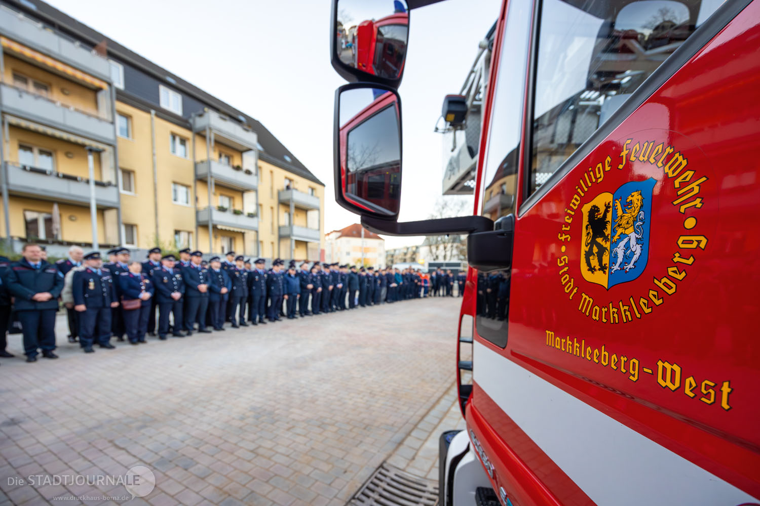 (Fotos: Falk Opelt)Es war schon ein beeindruckender Anblick, als die Kameradinnen und Kameraden der Feuerwehren Markkleebergs auf dem Vorplatz der Feuerwache Markkleeberg-West in Reih und Glied antraten. Flankiert wurden die Frauen und Männer von zwei modernen Einsatzfahrzeugen.