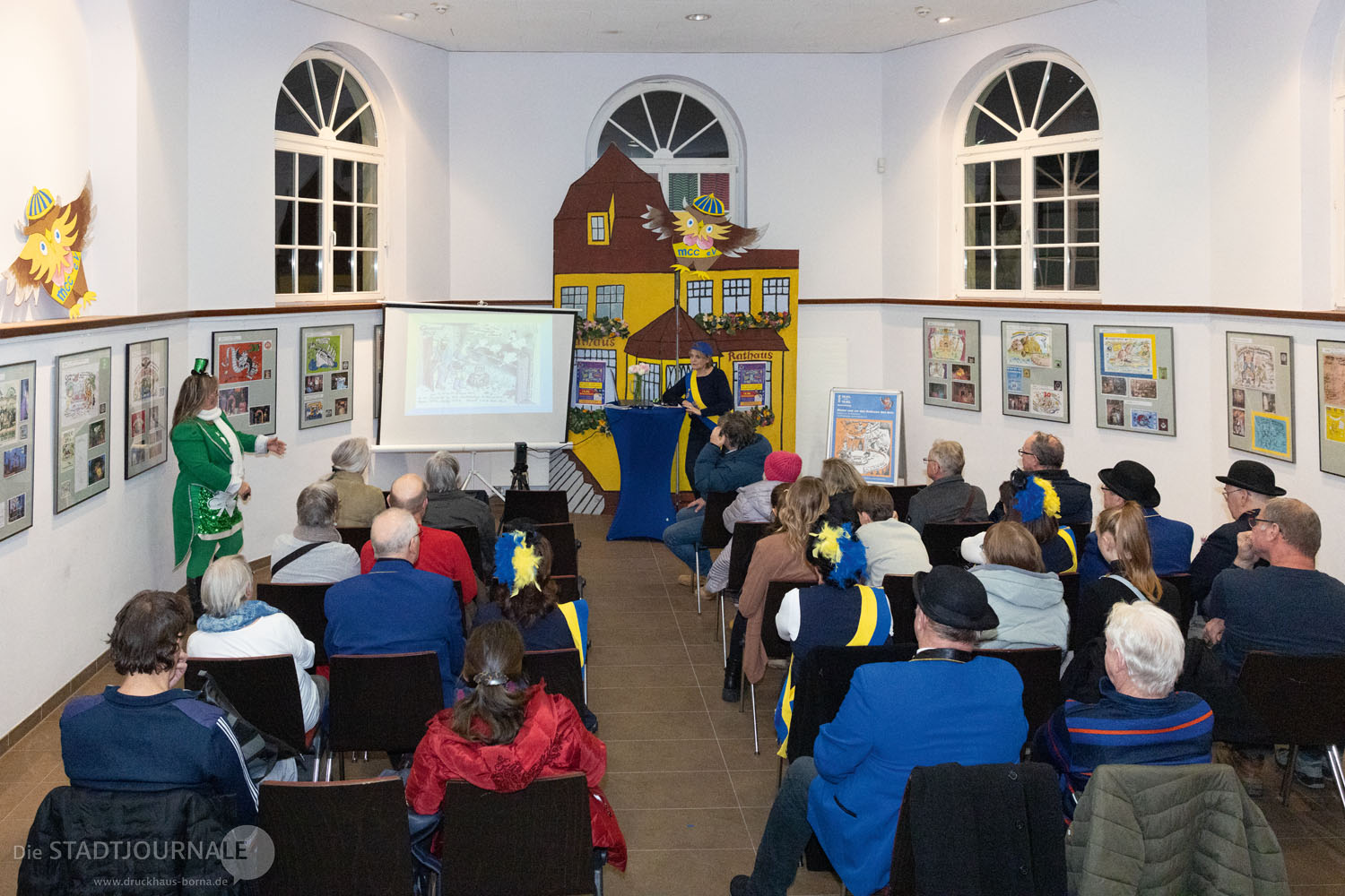 Die aktuelle Ausstellung des mcc im Rathausfoyer unter dem Titel „Hinter den Kulissen“ begleitet die Veranstaltungen der Markkleeberger Narren. Die Midissage am 29. Januar 2026 war eine gelungene Würdigung ihrer ehrenamtlichen Arbeit. Es gab lobende Worte von Bürgermeister Olaf Schlegel und Madeleine Gäbler vom Amt für Kultur und Tourismus. Kristina Raschel-Boettger erörterte die Themen detailliert und Ehrenpräsident Arnd Förster trug ein passendes Gedicht vor. Constanze Geß führte kurz und knackig durch das Programm.