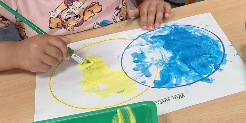 In den letzten Wochen begleitete die Igel- und Spatzengruppe der Pinsel Klecks durchs Farbenland, wo der Farbteufel sein Unwesen trieb. Er stahl den vier Farbfreunden, der gelben Ente Emma, dem blauen Fisch Blubb, dem grünen Frosch Quack und der roten Erdbeere Berri, die Farben. Nun lag das Sc...