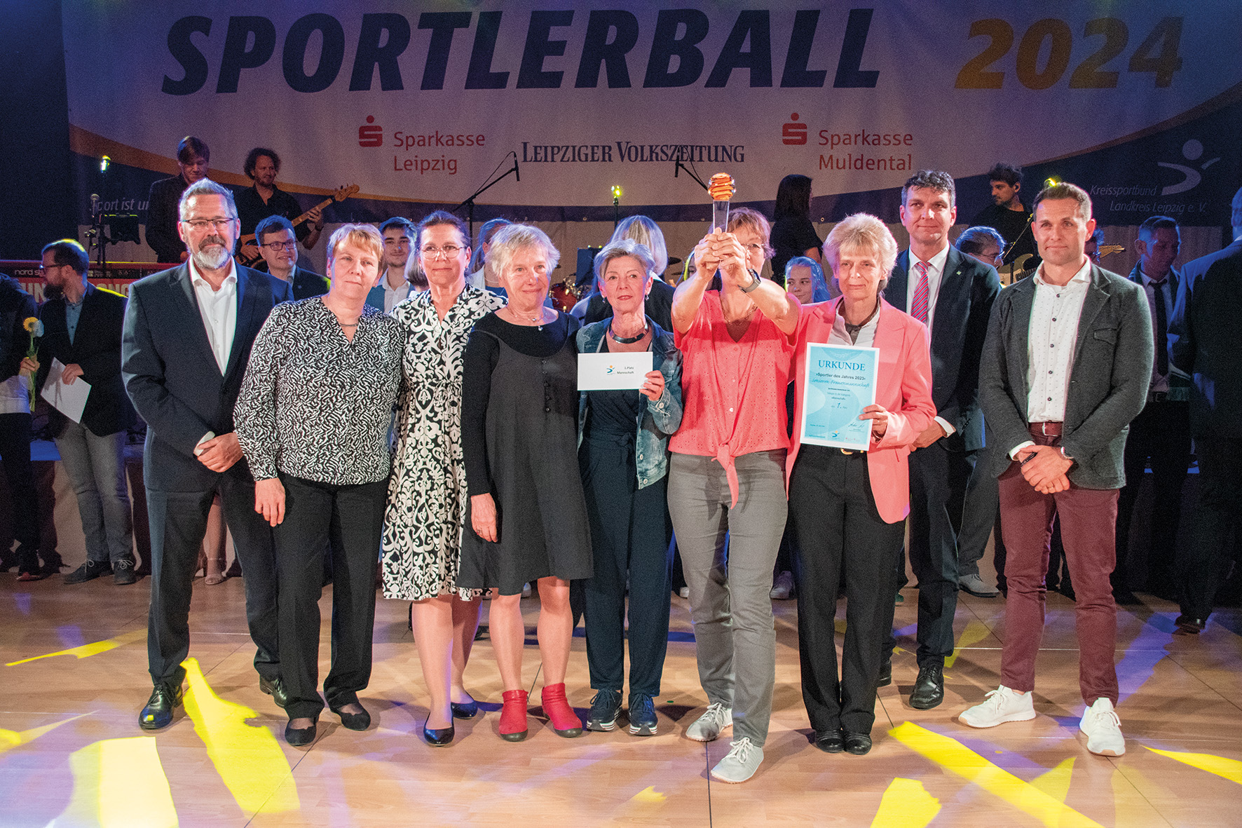 Sportlerball 2024Bevor die Herren sich an der Ehrung der besten Sportlerin, dem besten Sportler und der besten Mannschaft beteiligten, wurden jedoch noch engagierte Unternehmen für ihre großartige Unterstützung im Sport geehrt. Das waren in diesem Jahr: • Die Sauna am See, Markkleeberg