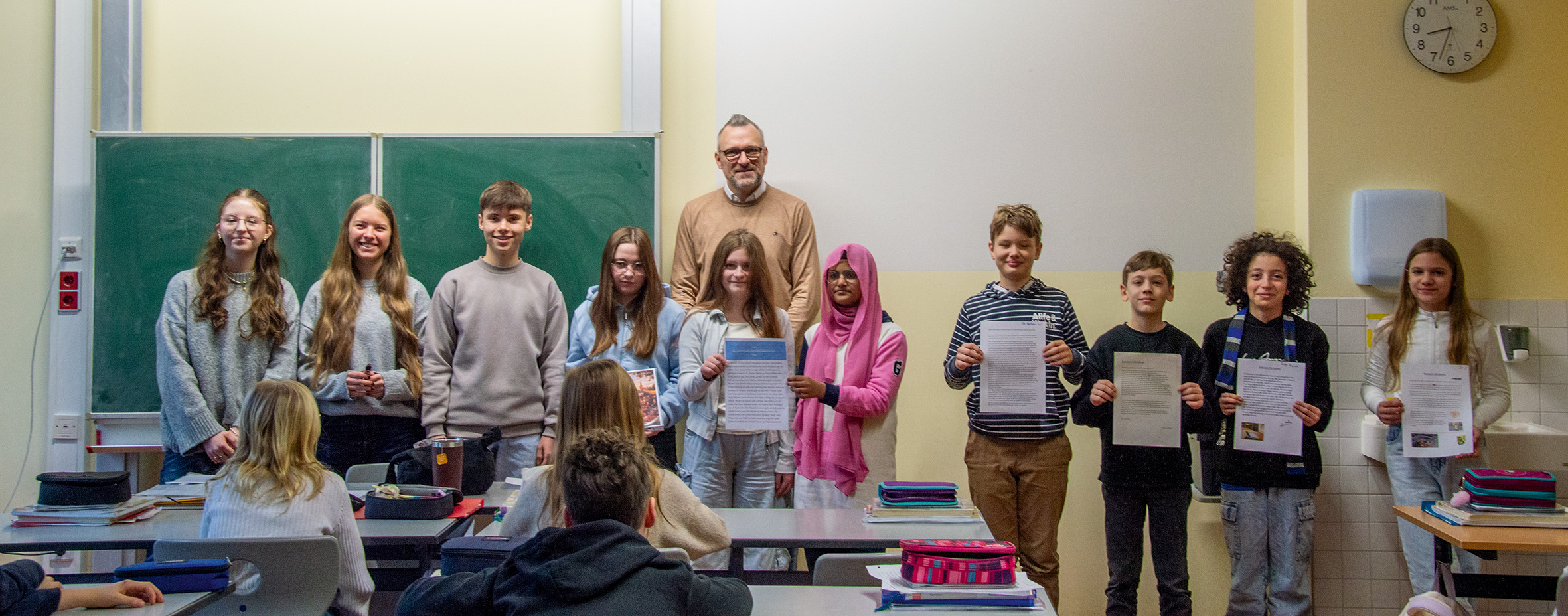 Ihre Vision von Borna in 50 Jahren übergaben die Schülerinnen und Schüler des Gymnasium „Am Breiten Teich“ am Montag, den 2. Februar, persönlich dem Leiter des Museums der Stadt Borna, Thomas Miltschus.