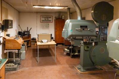 Bei einem geführten Rundgang konnte auch der ehemalige „agra-Club“ besichtigt werden. Rot getünchte Wände, schwarze Ledersitzgruppen und stellenweise bröselnder Putz – ein Charme längst vergangener Tage. Der Höhepunkt und zugleich Abschluss des Rundgangs fand sich wieder in Halle 4 im Obergeschoss: der Vorführraum. Wie in einer Zeitkapsel waren hier Kinoprojektoren, Mischpulte und Filmrollen zu entdecken.