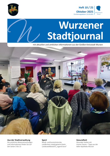 Das Wurzener Stadtjournal beinhaltet seit Januar 2017 auch das Amtsblatt der Großen Kreisstadt Wurzen. Es informiert einmal im Monat über die aktuellen Ereignisse in Wurzen und den Ortsteilen.